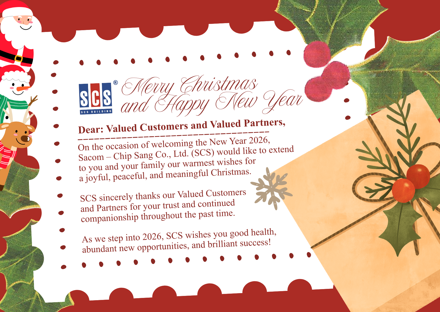 SACOM - CHIP SANG (SCS) COMPANY LIMITED WISHES YOU A MERRY CHRISTMAS AND A HAPPY NEW YEAR 2026
