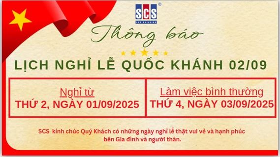SCS thông báo đến Quý Khách hàng/ Đối tác lịch nghỉ Lễ Quốc Khánh (02/09) năm 2025 như sau: